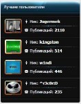 Красивый информер "Лучшие Пользователи" для вашего сайта. На нём вы можете видеть Аватар, Ник, и количество публикаций. Лучше смотрится на тёмных дизайнах.